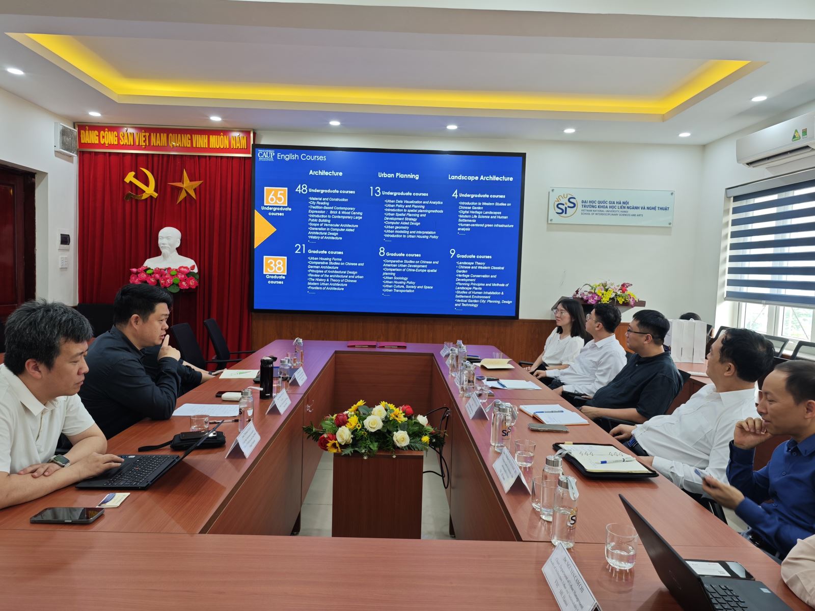 Thành phần tham dự và ý nghĩa buổi làm việc Về phía Trường Khoa học liên ngành và Nghệ thuật, buổi lễ có sự tham dự của: PGS.TS. Nguyễn Văn Hiệu - Hiệu trưởng nhà trường; PGS.TS. Nguyễn Ngọc Trực - Phó Trưởng khoa Kiến trúc, Đô thị và Khoa học bền vững. TS. Vũ Đường Luân - Trưởng Phòng Khoa học công nghệ và Hợp tác phát triển; TS.Nguyễn Cẩm Chi - Trưởng bộ môn Quản trị đô thị; TS.Đinh Thế Anh; TS.Nhậm Tiểu Cảnh.