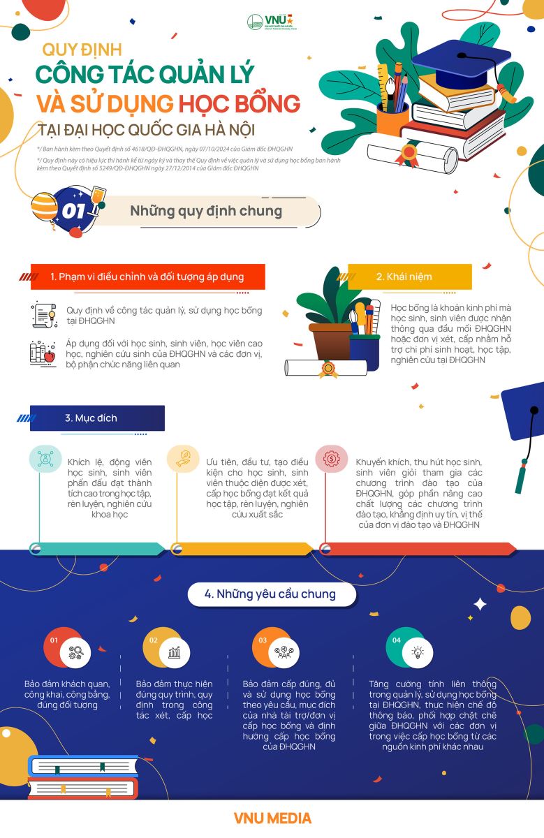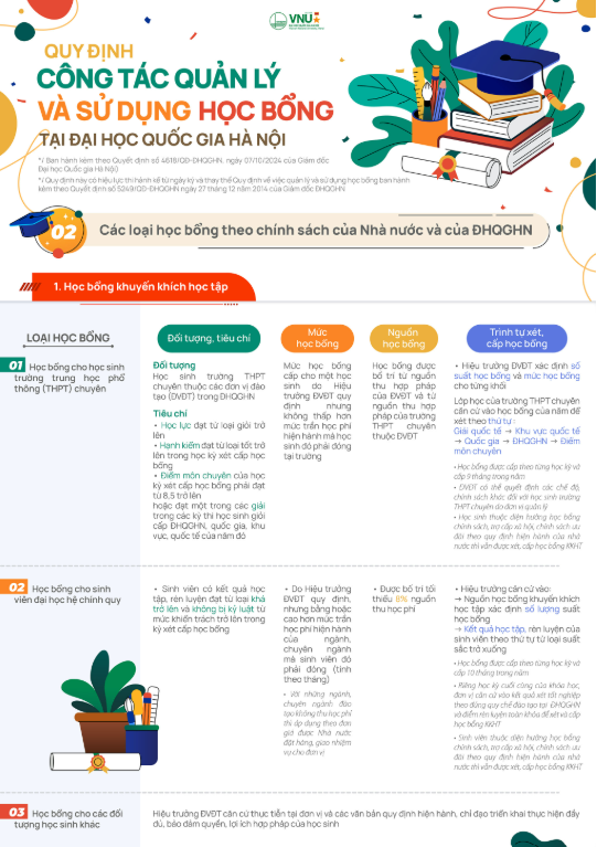 Quy định công tác quản lý và sử dụng học bổng tại Đại học Quốc gia Hà Nội bao gồm 5 chương, xem thông tin chi tiết tại link ở cuối thông báo.