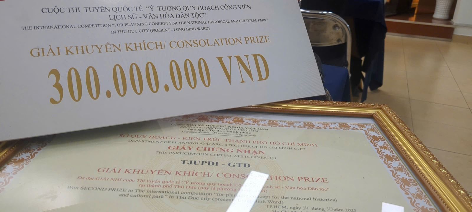 2. Cuộc thi quốc tế “Ý tưởng quy hoạch Công viên Lịch sử – Văn hoá Dân tộc” (TP. Thủ Đức) – đạt Giải Khuyến khích, trị giá 300 triệu đồng.