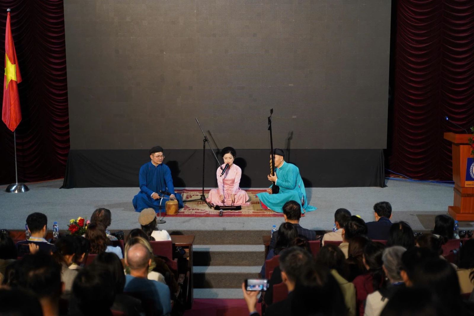 Đặc biệt, Chương trình biểu diễn nghệ thuật Ca trù đã tạo nên điểm nhấn giàu giá trị văn hóa tại hội thảo. Không chỉ là một hoạt động trình diễn, Ca trù được đặt trong mạch đối thoại học thuật về di sản, sáng tạo và giáo dục, qua đó khẳng định vai trò của nghệ thuật truyền thống như một thành tố sống động trong hệ sinh thái tri thức và công nghiệp sáng tạo. Chương trình vinh dự được đón tiếp NSUT. Bạch Vân - nghệ sĩ Ca trù tiêu biểu, người có nhiều đóng góp trong gìn giữ và lan tỏa giá trị di sản âm nhạc truyền thống Việt Nam.