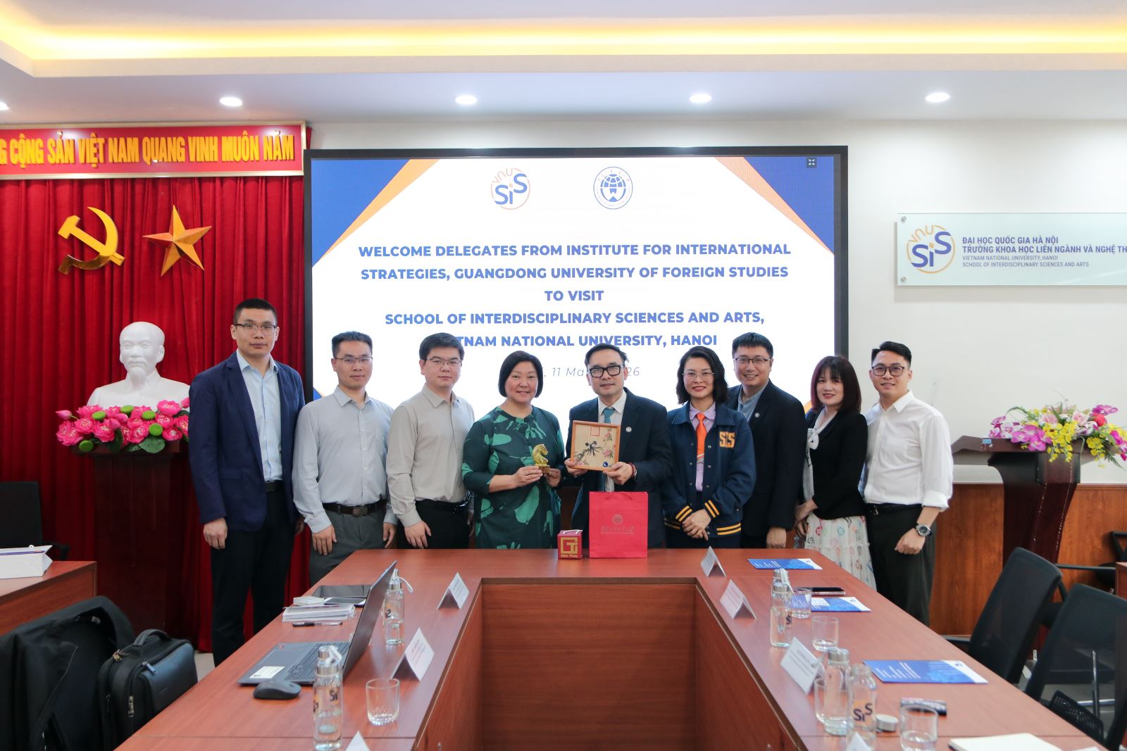 Phát biểu tại buổi làm việc, Giáo sư Li Qing – Trưởng đoàn, Viện trưởng Viện Nghiên cứu Chiến lược quốc tế Quảng Đông, Đại học Ngoại ngữ Ngoại thương Quảng Đông đánh giá cao mô hình đào tạo liên ngành độc đáo và tinh thần đổi mới sáng tạo của VNU-SIS. Phía bạn khẳng định, với thế mạnh trong đào tạo ngôn ngữ và kinh tế ngoại thương, việc kết nối với một đơn vị giàu tính nghệ thuật và khoa học ứng dụng như VNU-SIS sẽ mở ra những hướng đi mới, mang lại lợi ích thiết thực cho sinh viên và đội ngũ chuyên gia của cả hai cơ sở giáo dục trong bối cảnh hội nhập quốc tế ngày càng sâu rộng.